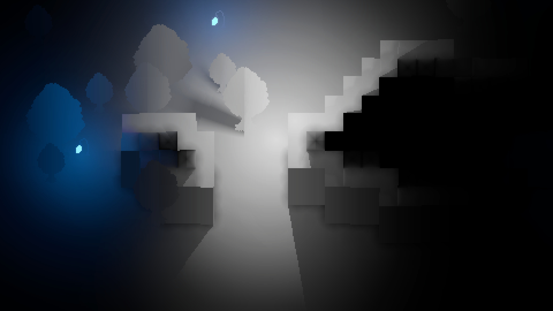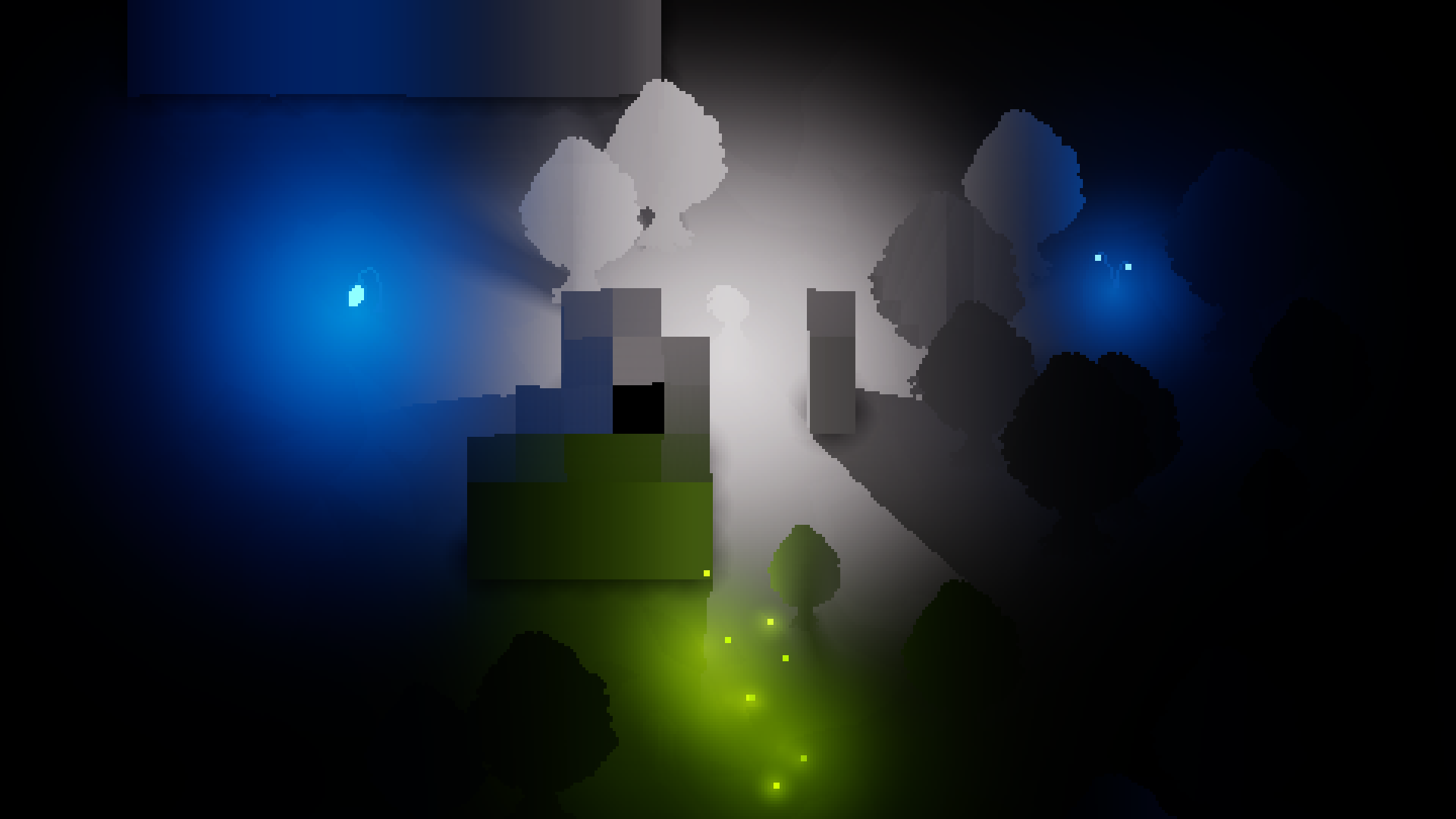 - Light and shadows are pixelated by design (tied to the GI texture resolution).